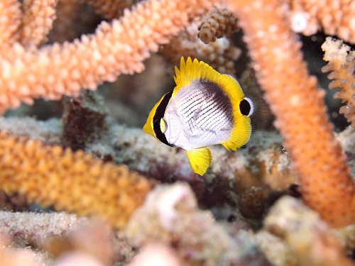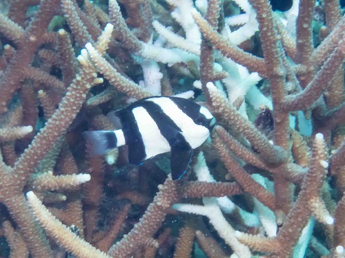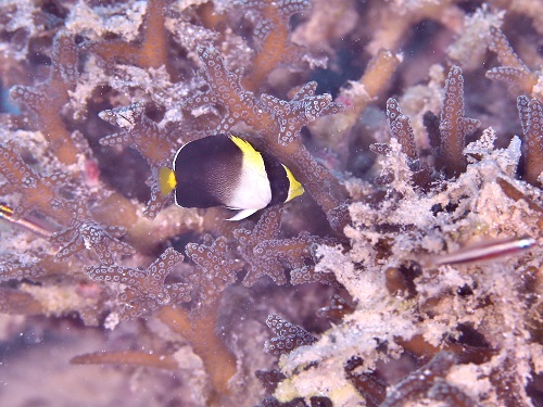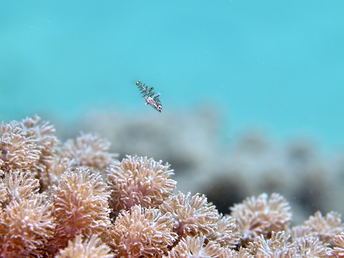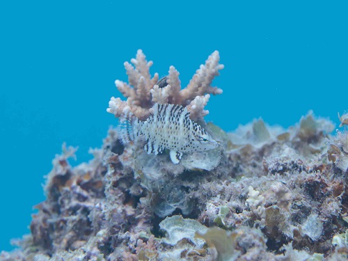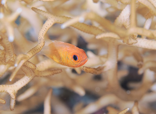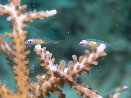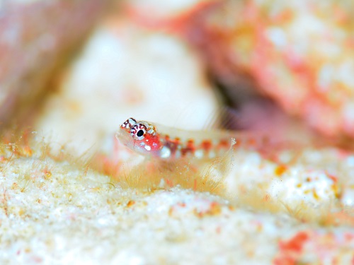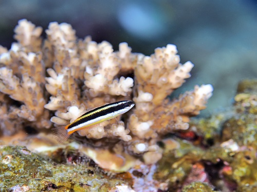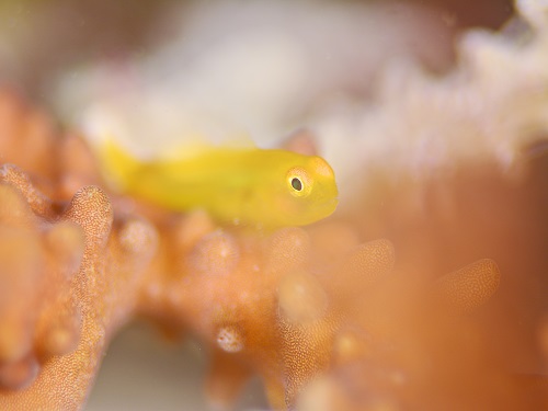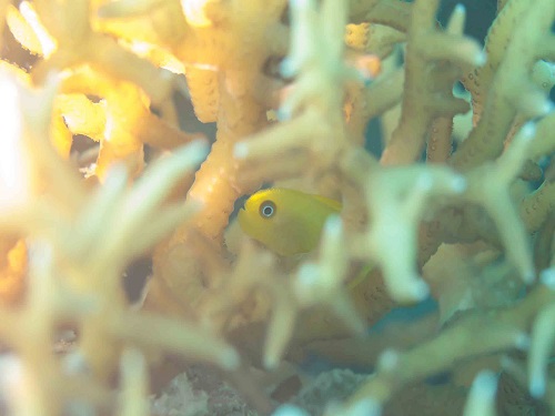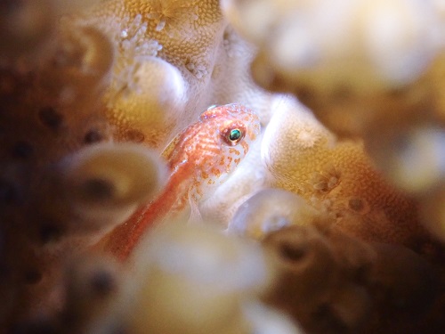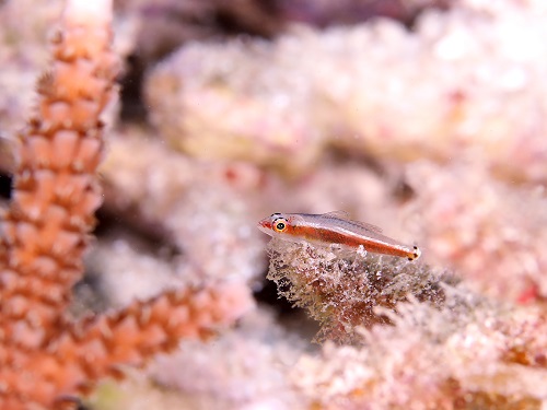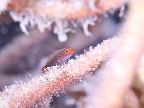 普段の環境と違って、枝サンゴに住んでるエリホシベニハゼ