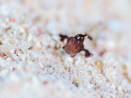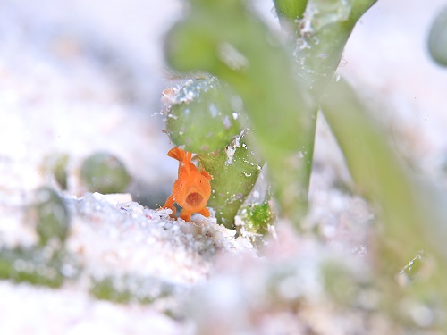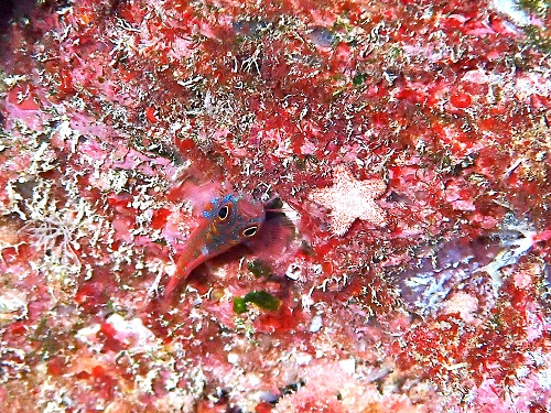 アオベニハゼの隣の星型ヒトデの子供は意識してたようです