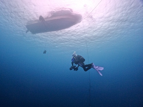 皆さんエントリーして、水中に消えていくのを上から眺めて