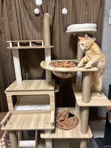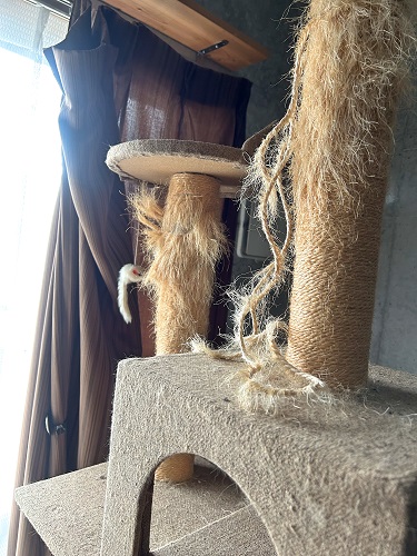 我が家のキャットタワー、気が付けばもう7年ぐらい使っててボロボロ・・・。