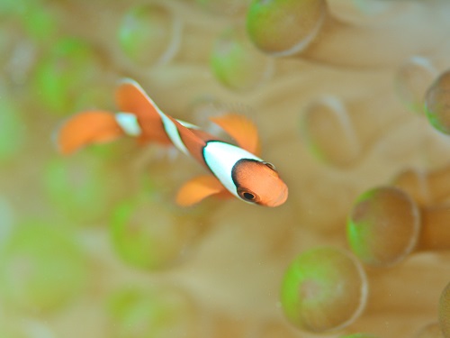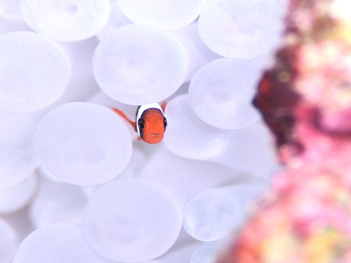 ここのポイントのイソギンチャクは年中白化してて