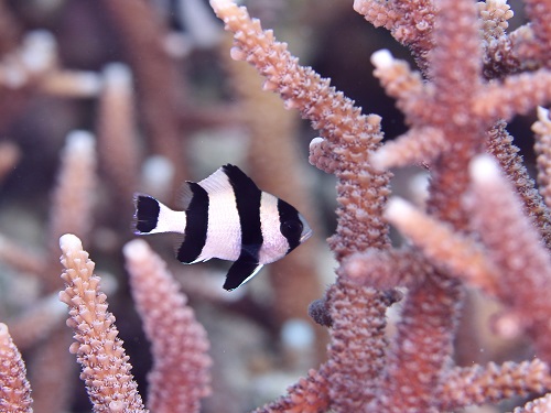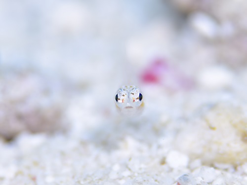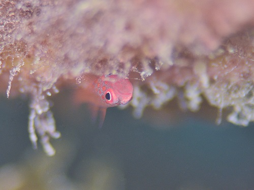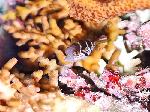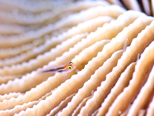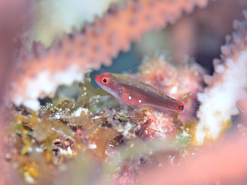 普段の環境と違って、枝サンゴに住んでるエリホシベニハゼ