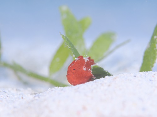アオベニハゼの隣の星型ヒトデの子供は意識してたようです